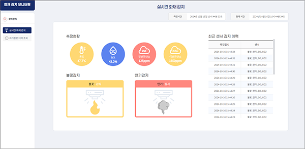 - 최근 감지된 불꽃, 연기센서 이력을 표시